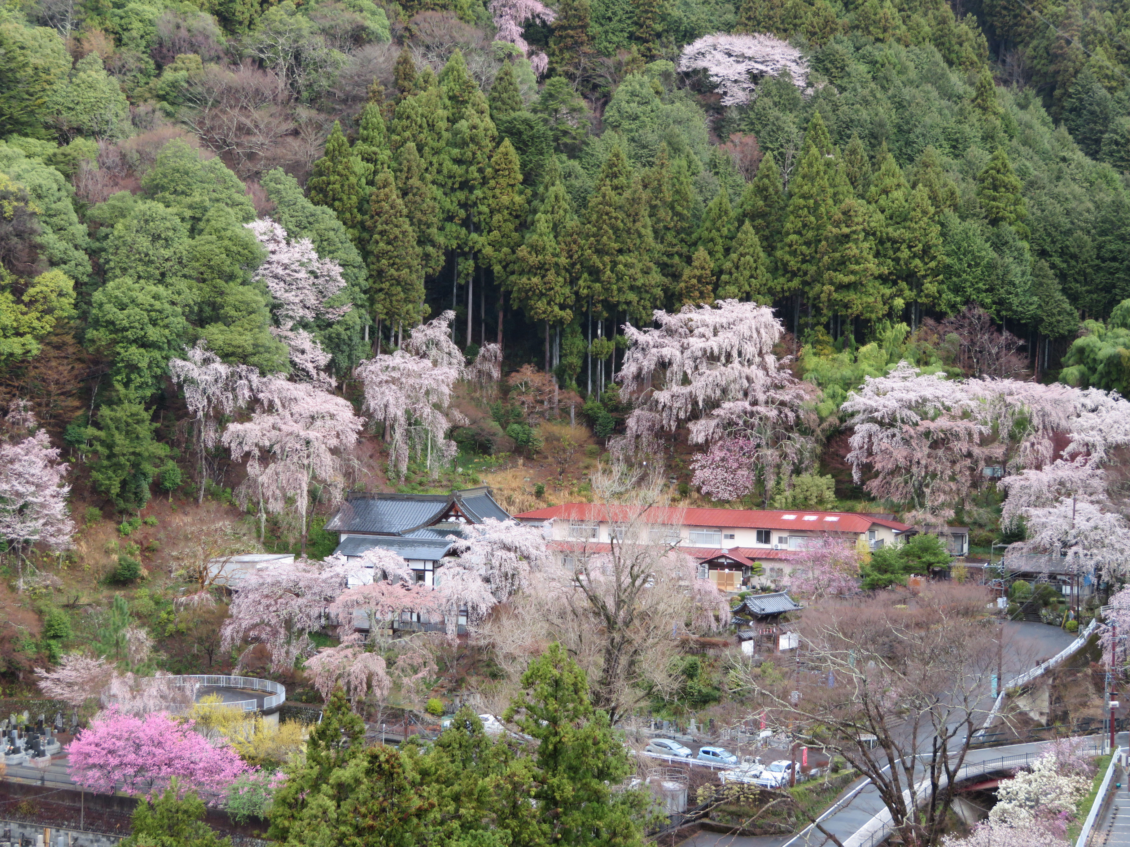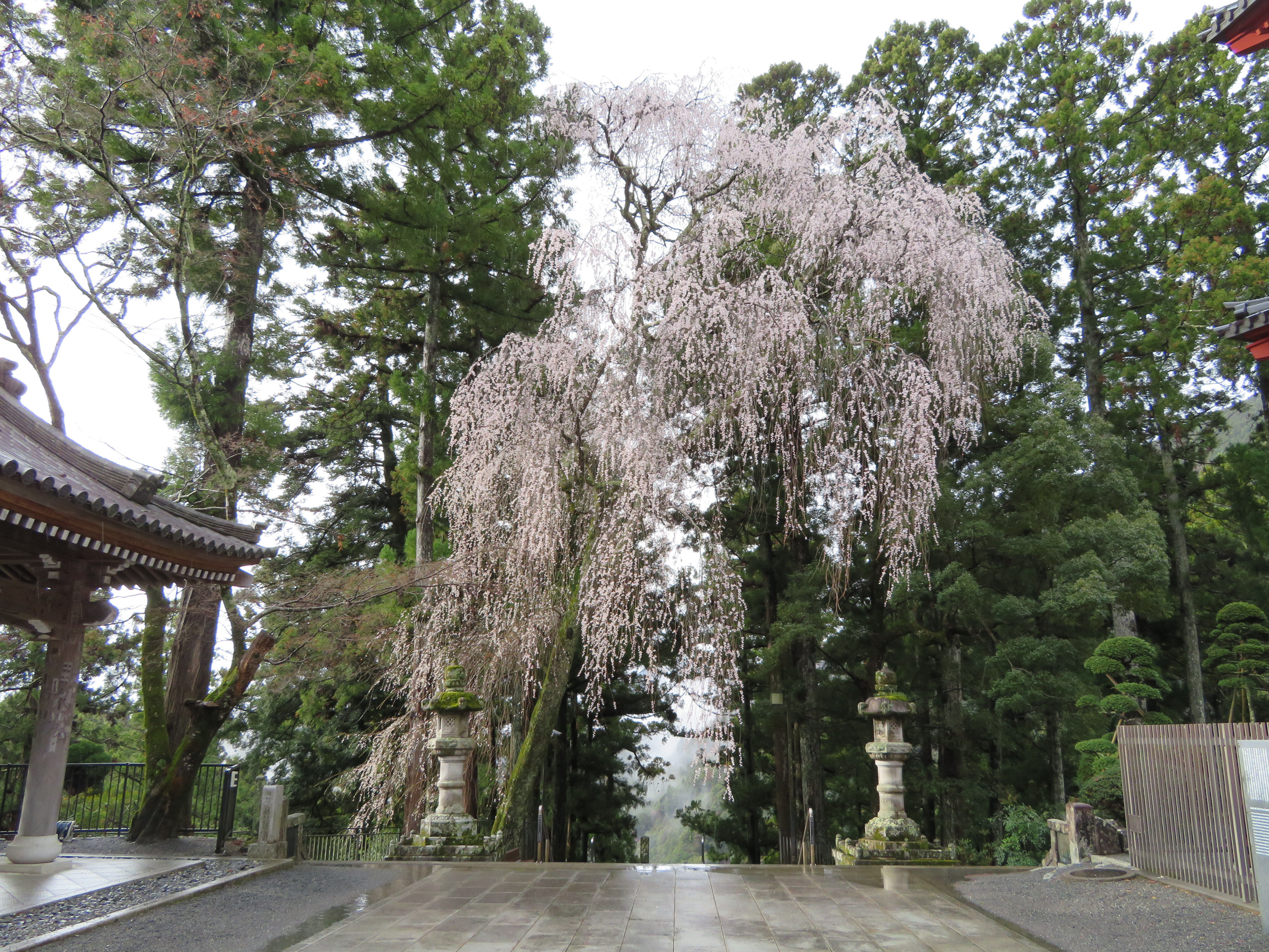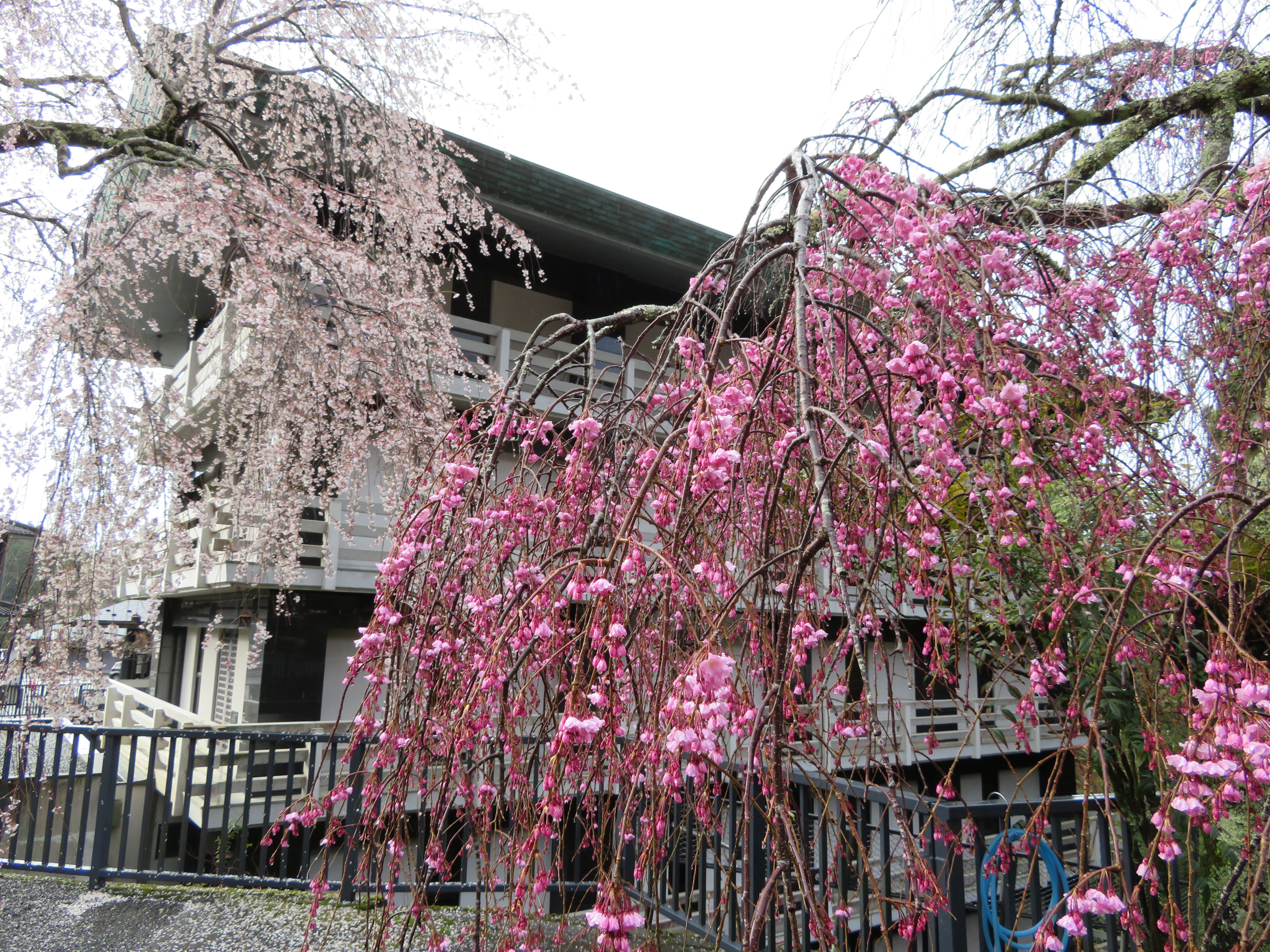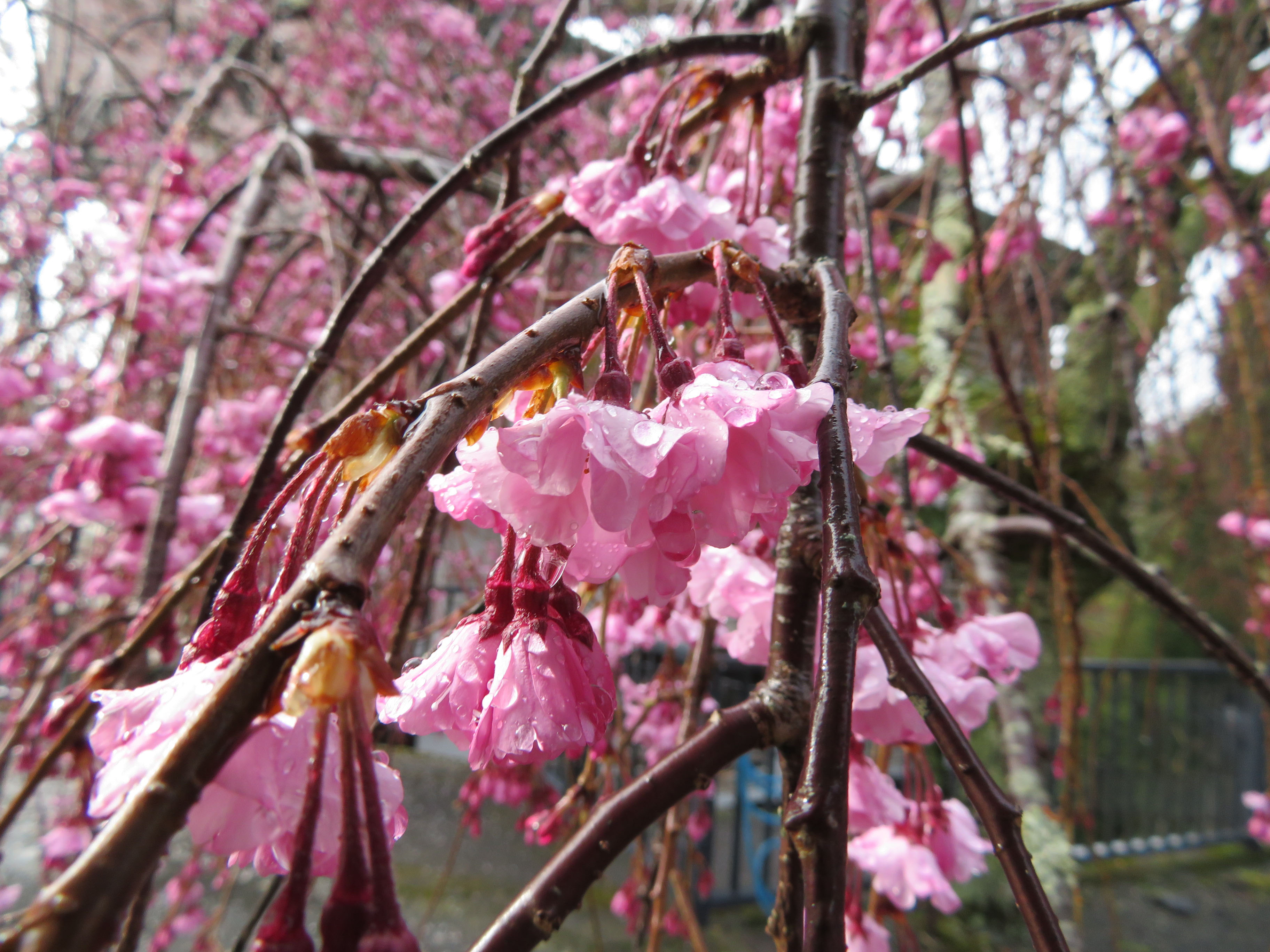 境内の紅しだれ桜もたくさん花が開いてきました。