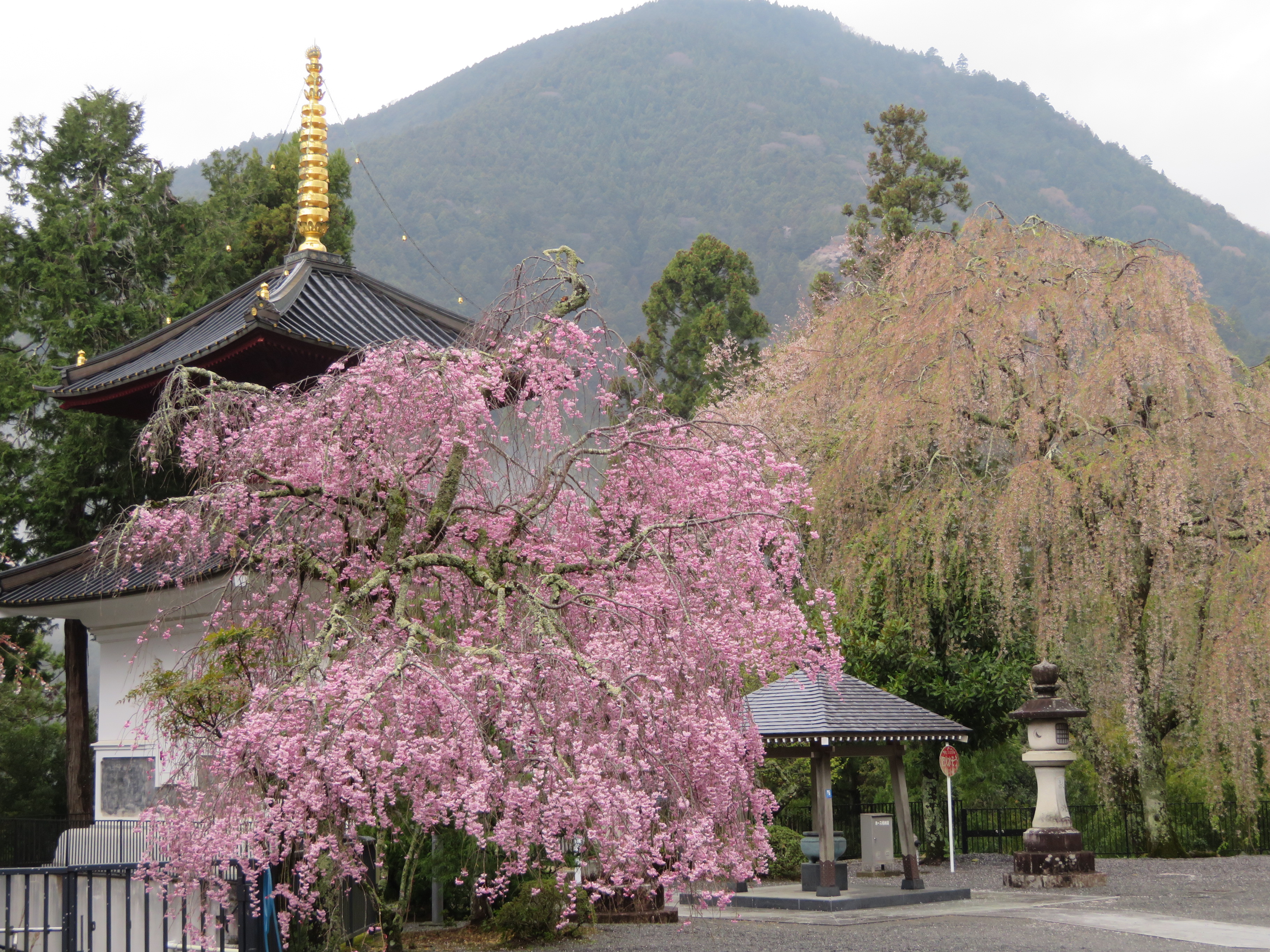 撮影時間 8:18 紅しだれはまだ花を保っています。